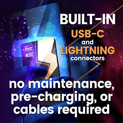 BATTARIX : Fast Charging, External Battery for Emergency Survival Everyday Carry Lightning & USB C for Android+iPhone (Single Use, Pre-Charged)